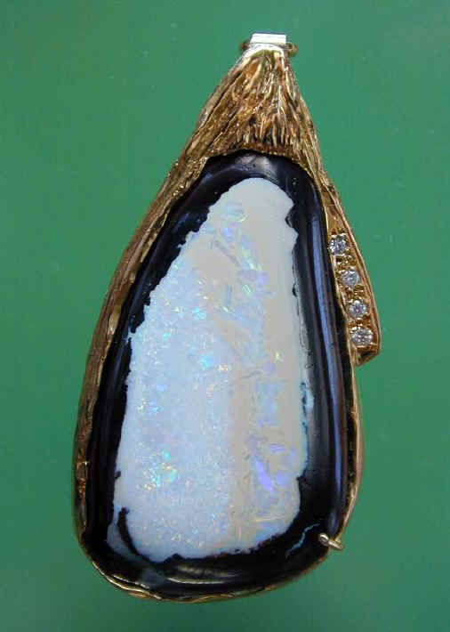 Yowah Nut encased in 18ct gold with gidyea wood texture