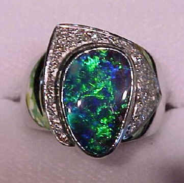 18ct white gold ladies ring, Yowah seam opal (from our mine)