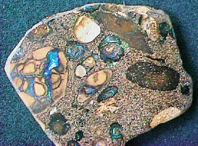 This is a slice of conglomerate, a mixture of sandstone, small ironstone nuts and opal nuts.Approximately 40mm x 37mm